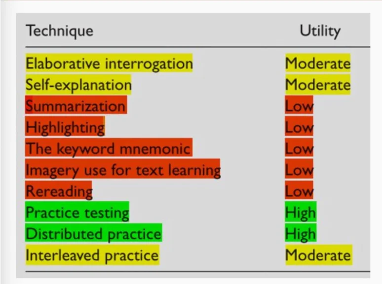 I follow Mollick on Substack as well as Twitter, where he recently brought to life a meta-study on learning from 2013 that analyzed the ten most popular learning techniques.