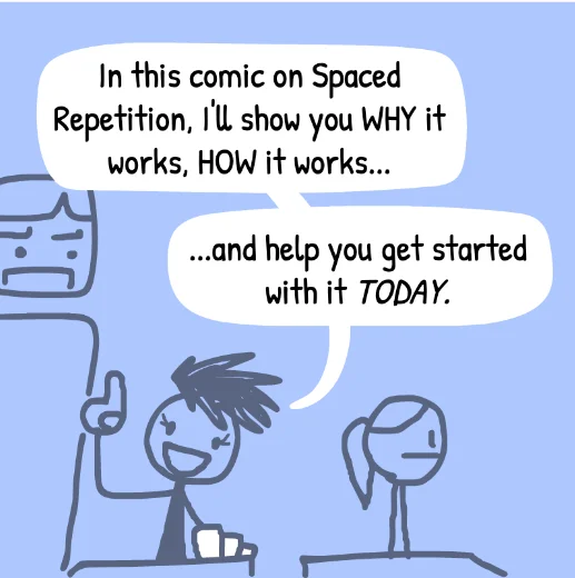 The comic is a fantastic teaching tool. I highly recommend you check it out, as the site makes spaced repetition visceral and covers far more than I do here. You’ll quickly understand how effective space repetition is and how easily you can apply it in your own life.